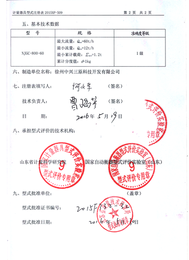 產(chǎn)品鑒定證書(給煤機型式評價報告) |