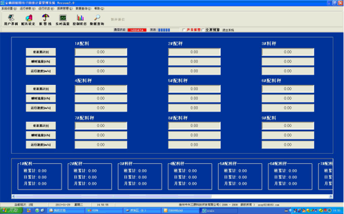 2、配料系統(tǒng)自動控制畫面 ①、操作系統(tǒng)具備自動生成班報、日報、月報報表功能. ②、顯示的數(shù)據(jù)包括運(yùn)行方式、瞬時流量、累計量、斷料報警(聲光報警)。